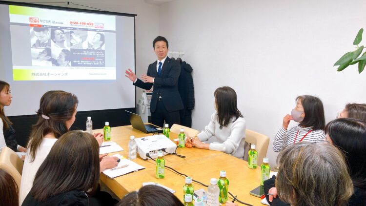 先日、株式会社オーシャンズの「カビ取り屋.com」の河島さんを講師に迎え、カビについての社内勉強会を開催しました。「カビ取り屋.com」は創業15年で、3,500件以上の実績を持つカビ除去の専門業者です。