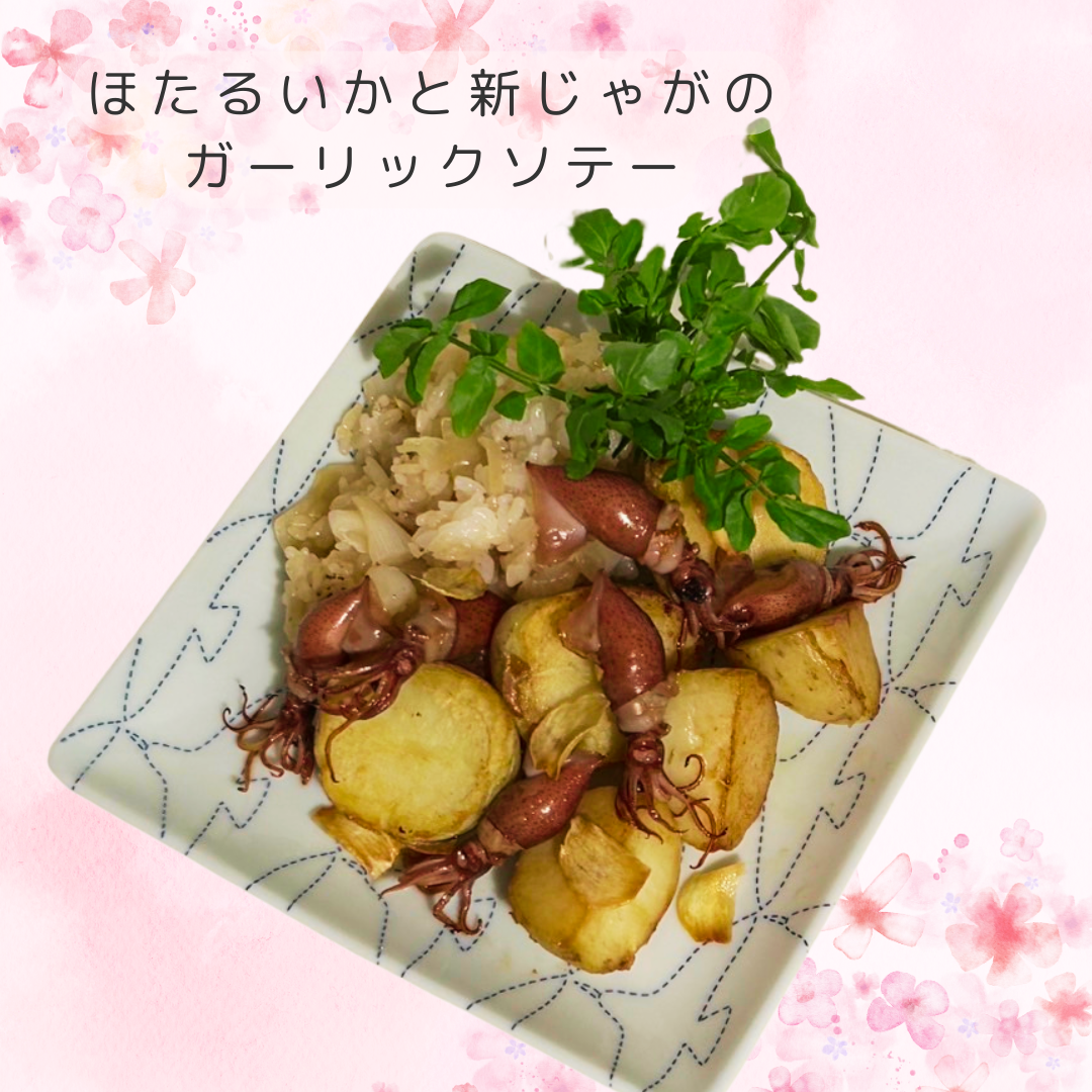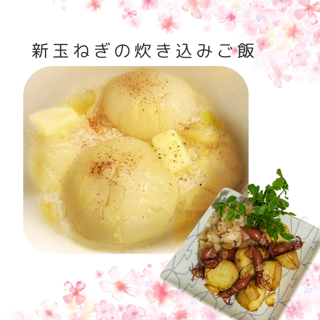 4月のレシピ【新玉ねぎの炊き込みご飯】【ほたるいかと新じゃがのガーリックソテー】