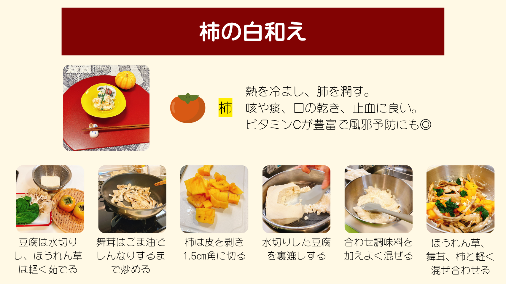 秋の薬膳レシピ②【柿の白和え】